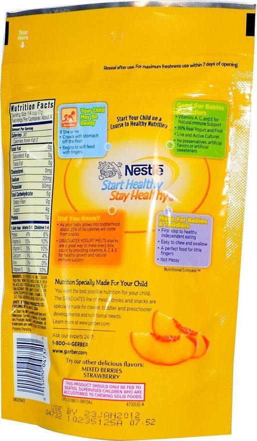 As your baby grows into toddlerhood, about 25% of his calories will come from snacks. Graduates yogurt melts snacks are a great way to make every bite count.